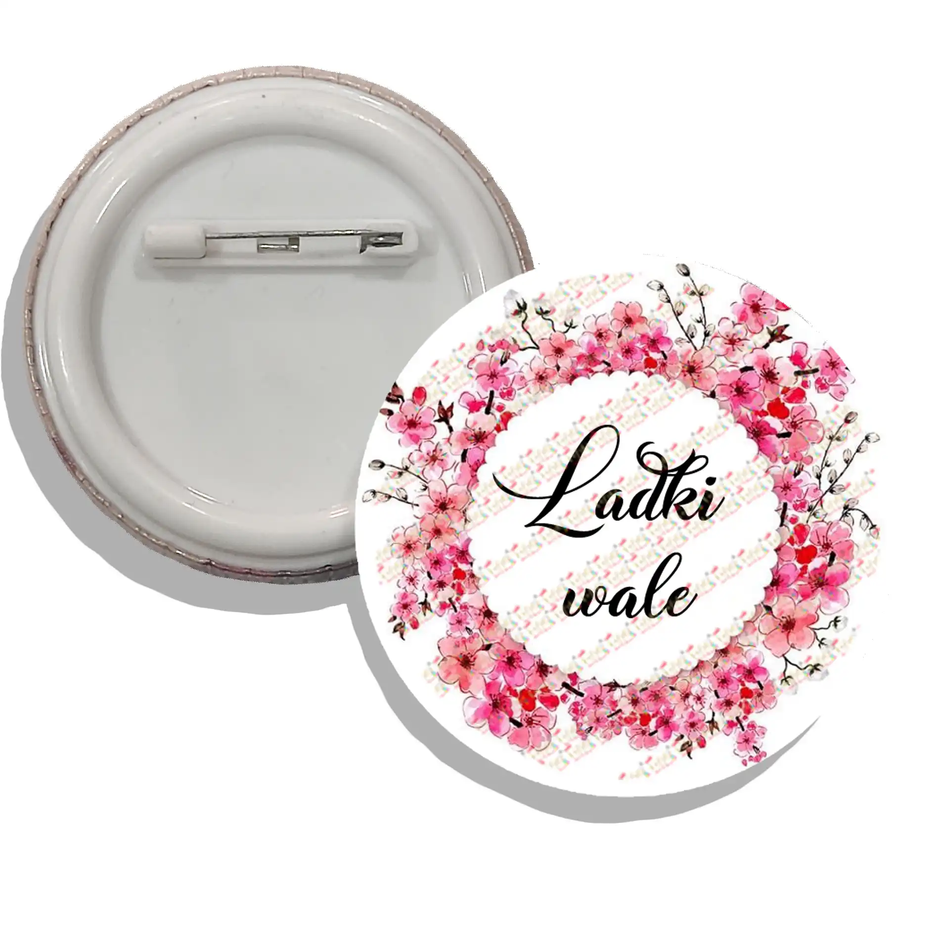 Gfylo | bride team wedding Badges | Ladkiwale Ladkiwale Badges, Groom Bride Badges I Plastic Pin Badge | For Couple, Family, Friend, brother | Gift occasion Marriage (58 mm round pin Badge) Set of 25