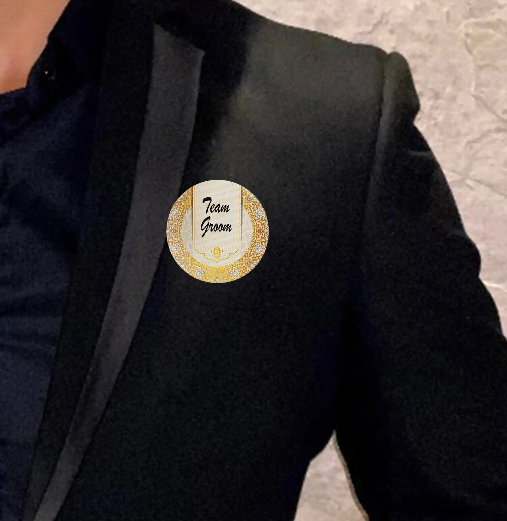 Wedding Badges came with Superior New Classy Designs which make the badges best choice for you Made from durable metal Back Side id White Imported Plastic these perfectly sized pin These pins can be used in a variety of ways including as lapel pins or even as part of a bridal bouquet We Provide Best quality Photo Paper print front side is laminated which Last Long 58 mm diameter Glossy Finish These features make these badges the perfect choice for everyone Perfect for gifting purpose can be gifted on a birthday anniversary or any other special occasion MADE IN INDIA PRODUCTS