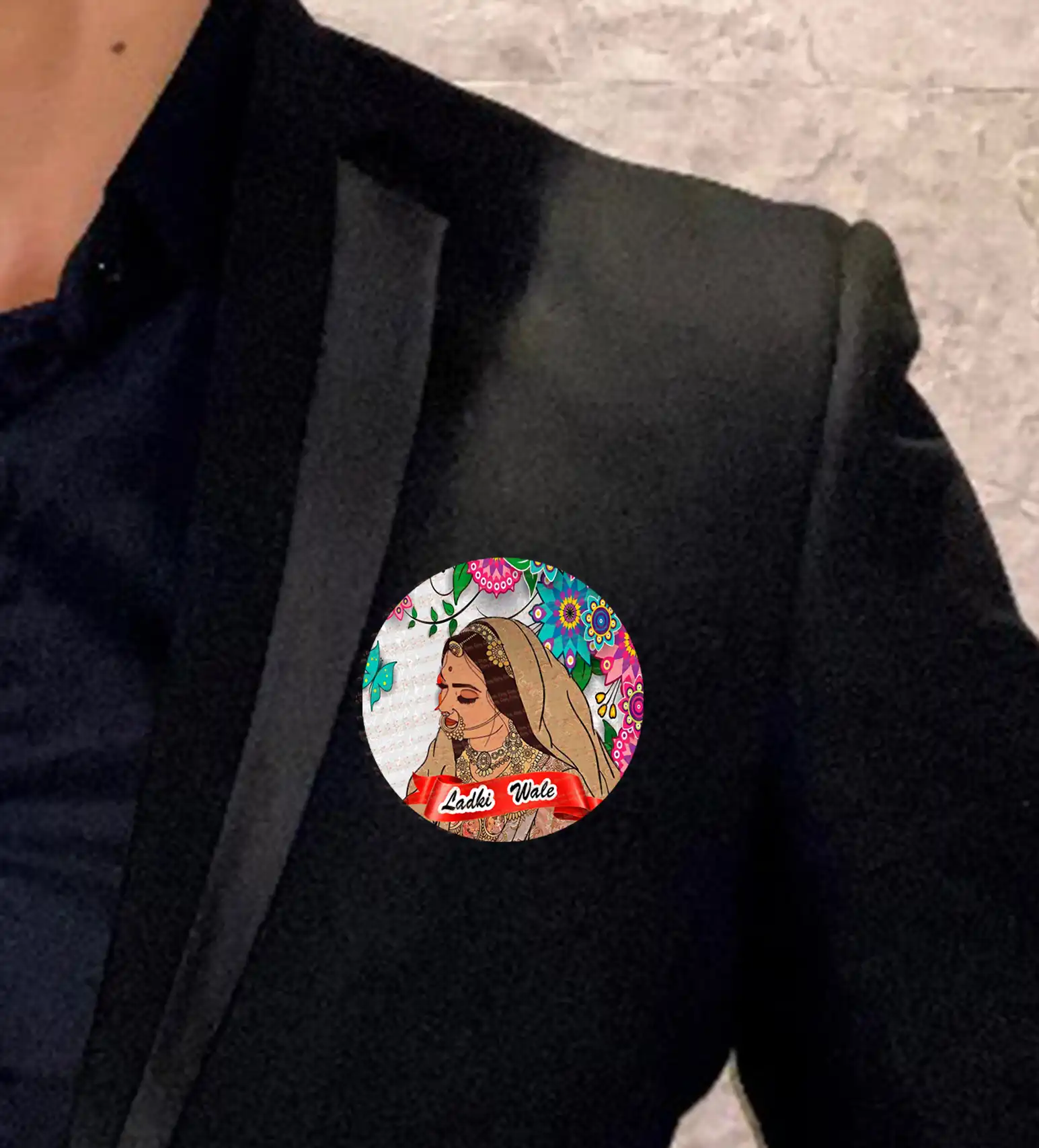 Wedding Badges came with Superior New Classy Designs which make the badges best choice for you Made from durable metal Back Side id White Imported Plastic these perfectly sized pin These pins can be used in a variety of ways including as lapel pins or even as part of a bridal bouquet We Provide Best quality Photo Paper print front side is laminated which Last Long 58 mm diameter Glossy Finish These features make these badges the perfect choice for everyone Perfect for gifting purpose can be gifted on a birthday anniversary or any other special occasion MADE IN INDIA PRODUCTS