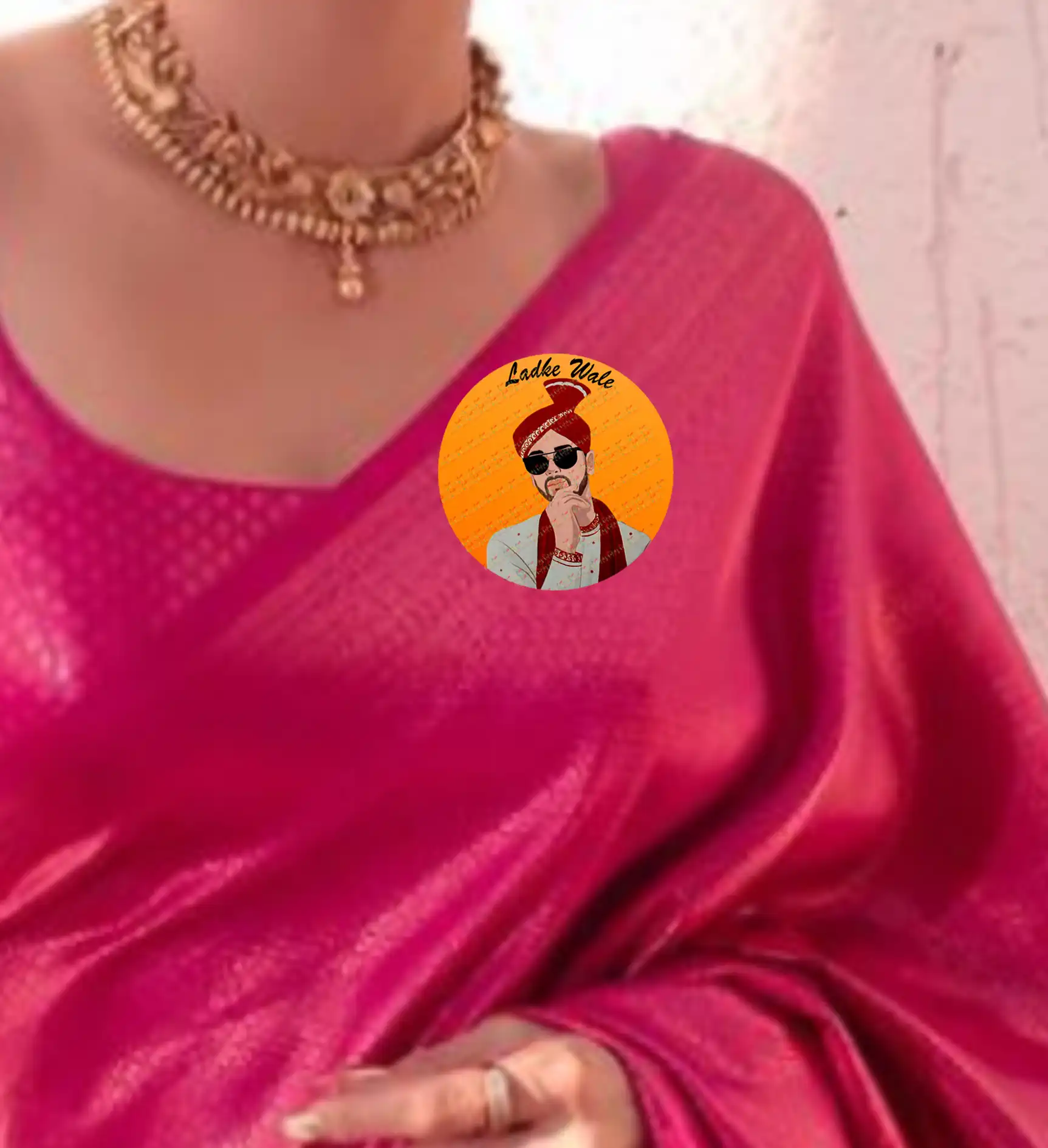 Gfylo | Suit and Glass Wedding Badges | Ladkiwale Ladkiwale Badges, Groom Bride Badges I Plastic Pin Badge | For Couple, Family, Friend, brother | Gift occasion Marriage (58 mm round pin Badge) Set of 40